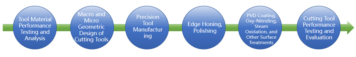 In the production of HSS and PM-HSS tools, Tiangong has established a comprehensive production system for holemaking and threading tool series, including: Production of tool materials; Material performance testing and analysis; Tool design; Tool manufacturing; Edge honing; PVD coating; Tool cutting performance testing and evaluation.