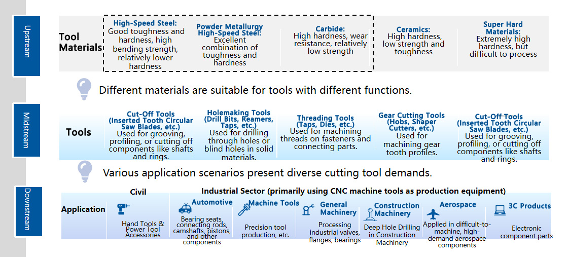 Tiangong's high-speed steel cutting tool products include hole cutting tools, screw hole cutting tools, turning tools, and milling tools. Cemented carbide tools include solid carbide end mills, drill bits, reamers, profile cutters, and finishing cutters. These products are widely used to machine materials such as alloy steel, mould steel, copper, aluminum, stainless steel, high-temperature alloys, titanium alloys, high-strength steels, and carbon fiber. They serve diverse sectors including aerospace, aviation, automotive, high-speed rail, petrochemicals, machinery manufacturing, medical equipment, and military industry.